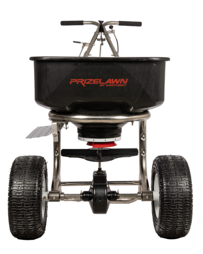 The newest instalment in the Prizelawn line, the PSR2K-PRO is a professional-grade broadcast spreader designed for accuracy, durability, and ease of use. Featuring Prizelawn’s Helical Cone Technology, stainless steel frame, 80lb hopper, and 13″ pneumatic turf-saver tires, it delivers a precise, uniform spread pattern while resisting rust and wear. Ideal for fertilizer, seed, ice melt, and more, this spreader includes a hopper cover, deflector, and ergonomic design for reliable performance season after season.